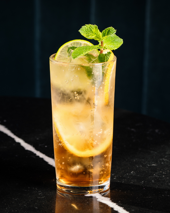 2cl LimettensaftSchütteln, über zerstoßenes Eis abseihen und mit Minze und Orange garnieren